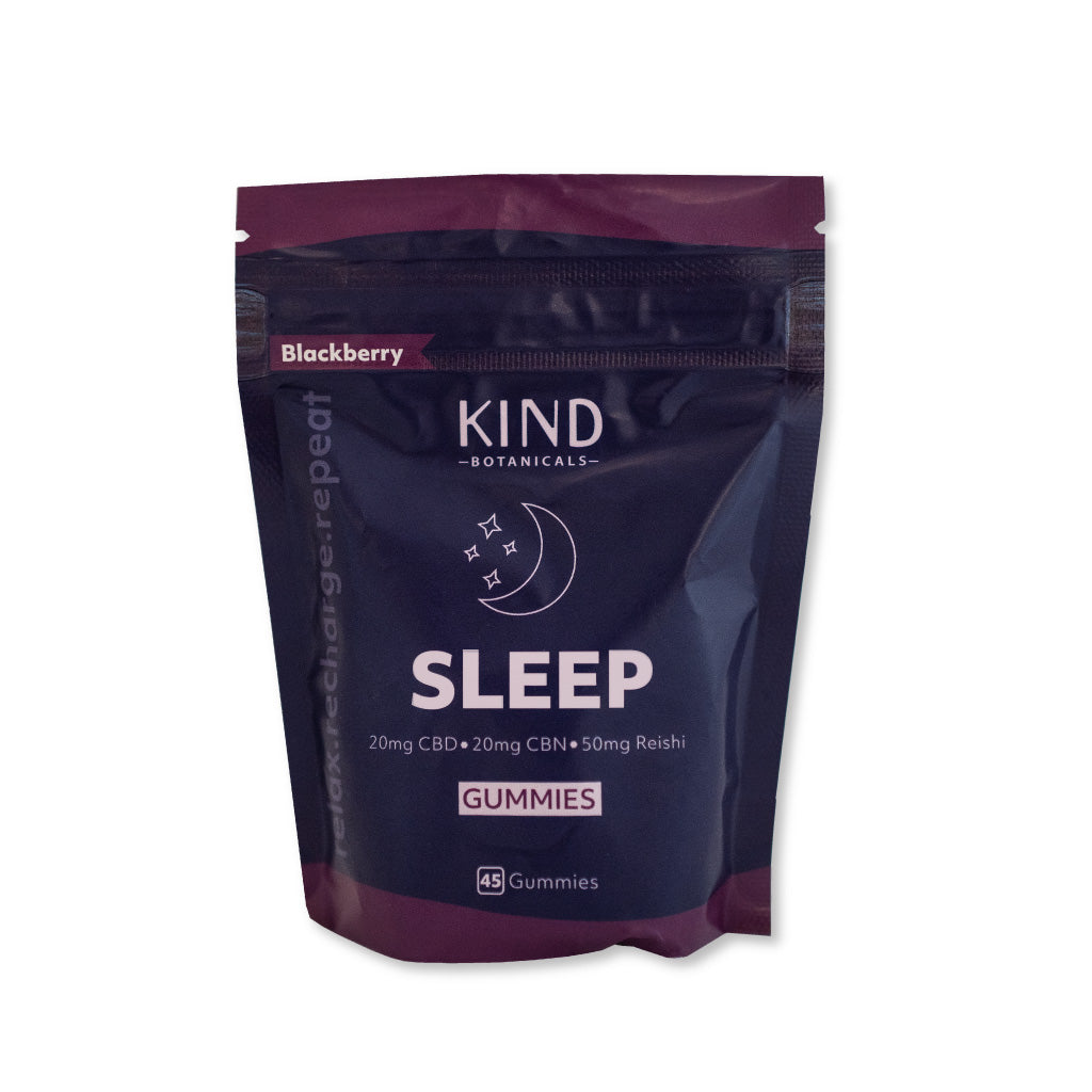 Kind Botanicals Sleep Gummies, in a delicious blackberry flavor, combine 20mg of CBD, 20mg of CBN, and 50mg of reishi per gummy to promote deep, restful sleep and stress relief. This natural blend supports relaxation, eases tension, and helps you wake up refreshed, without grogginess. With 45 gummies per bag, these non-habit forming sleep aids also offer the added benefit of immune support from reishi, making them the perfect addition to your nightly routine.